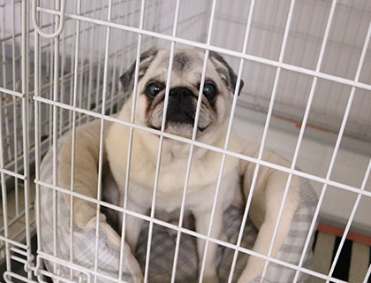 ワンちゃんに窮屈な思いをさせないよう、大型犬用のケージで、広々とゆったりお休みいただけます。愛用のタオルやベッドも持ち込みOKです。